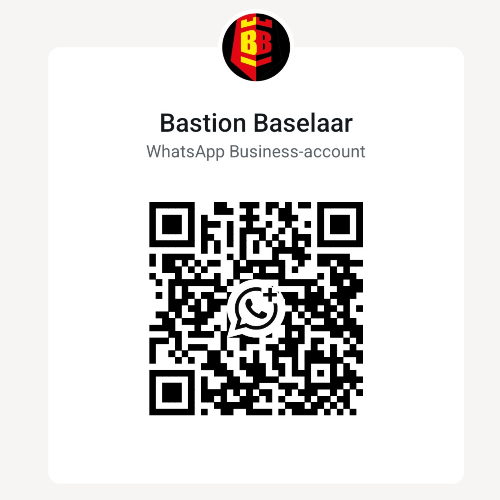 Om werk en prive iets beter te kunnen scheiden is er nu een zakelijk WA account. Graag je vragen en opmerkingen naar dit account appen (hieronder de qr code, of op de homepagina van Bastion Baselaar te vinden (rechts)).